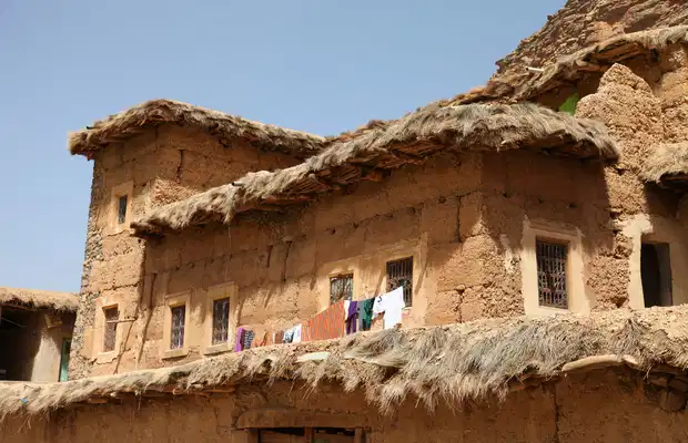 Ce village ne manque pas de pittoresque, "village-rue" le long de la piste (le goudron est à plusieurs kilomètres de là, mais des 4x4 de touristes commencent à traverser la vallée). Un ancien grenier n'a plus qu'une tour, squatté par un nid de cigognes. Un seul commerce : vêtements et chaussures. Tout n'est qu'activité rurale, et les cultures m'ont évoqué la haute vallée de l'Indus, au Ladakh. Même lumière , même agriculture en altitude et les enfants ont les joues "cuites" par le soleil.