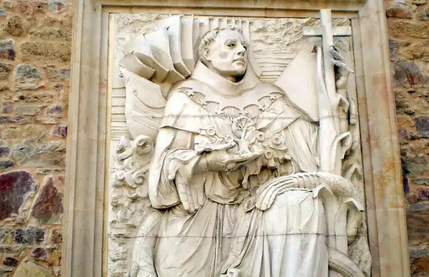 Dans la façade latérale du bâtiment de la Mairie, qui se trouve en face de l’Église de Saint Jean du Marché, on trouve ce bas-relief qui est dédié au frère franciscain Toribio de Benavente, surnommé « Motolínea », qui a évangélisé de nombreuses zones de Mexique et d'Amérique Centrale. Le bas-relief fut exécuté par l'artiste mexicain Carlos H. Terrés. Il représente le frère et une série de symboles en rapport avec son œuvre missionnaire et la défense des indigènes. Par exemple, 12 bougies qui symbolisent le groupe de franciscains qui sont arrivés au Mexique en 1524, et les symboles du calendrier