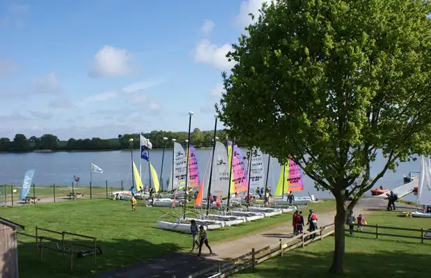 À 3 km en direction de Ballots, sur un site protégé de 120 hectares, le lac, les espaces verts et le petit bois permettent de pratiquer en toute sécurité la pêche, la randonnée, la course d'orientation, le mini-golf, le swin-golf, le VTT, le Blokart, l'équitation, le tir à l'arc, les sports collectifs et les activités nautiques (catamaran, planche à voile, kayak, Mainaleau).