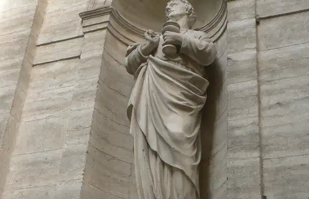 Cela surprend mais elle porte belle et bien le même nom que celle qui se trouvait à la place Jean Jaurès ( et qui fut détruite). Celle ci date du XVIIIème siècle et a été construites par les jésuites. Cette église est sobre à l'intérieur, en plus il y fait très sombre ! Mais la statue de la Vierge en marbre est vraiment belle, il y a un retable aussi et bien sur, quelques statues de saints. Je préfère la façade extérieure avec ces fausses colonnes intégrées dans le mur. Vous allez voir les deux statues, celle de gauche représente Saint Jean. Celle de droite représente Saint Joseph.