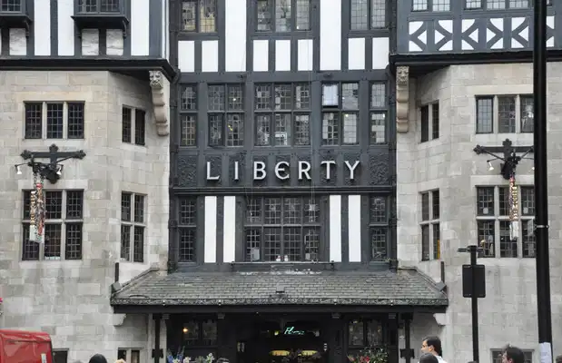 Londres, capitale de la mode, Londres, et ses magasins incroyables. C'est le cas de Liberty, qui annonce la couleur dès l'entrée, avec sa façade "Tudor", qui contraste grandement avec les vitrines flashy des grandes chaînes alentours. Fondé en 1875 par Arthur Lasenby Liberty, qui commercialisait des produits venus de tout l'Empire Britannique, Liberty affichait déjà une tendance sinon au luxe, aux produits de grande qualité. Spécialisé ensuite dans la création textile, c'est seulement au début du 20e siècle que l'enseigne prend son tournant définitif: défense de la création artisanale, mais toujours dans un esprit très haut de gamme.