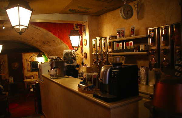 On y peut savourer des boissons chaudes au goût délicat sur une petite terrasse comme dans un intérieur de vieilles pierres en voûtes, sur des fauteuils agréables, bien qu’un peu kitsch, dans les alentours de 2,50€.
