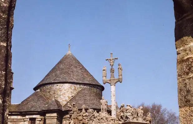 C'est surtout le calvaire qui est admirable ; il date du XVIè siècle et présente pas moins de 200 personnages sculptés dans le granit. Ces statues un peu naïves, et très "touchantes" représentent divers épisodes de la vie du Christ. Les personnages portent les costumes bretons de l'époque des sculptures et le monument