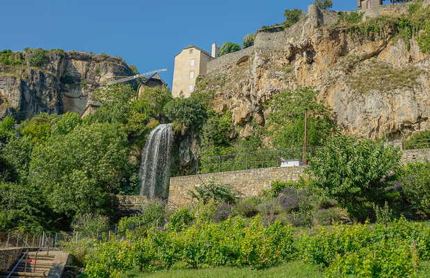 Le village de Salles-la-Source porte bien son nom. De nombreuses sources passent par la ville et se recoupent en un endroit, formant une cascade en plein centre-ville. Dans le passé, des moulins étaient alimentés par le débit de l'eau. De nos jours, l'eau est exploitée par EDF et est à l'origine d'une polémique, les habitants se plaignant du fait que l'entreprise de production d'électricité se serve gratuitement.