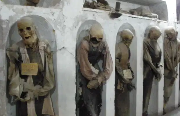 L’un des plus macabres et l’un des plus curieux des monuments de Palerme est le musée des Catacombes de Cappuccino. Il se trouve à la périphérie de Palerme et a plus de 8000 cadavres de toutes sortes de personnes, hommes, femmes et même des enfants. Comme ils ont vu que les conditions de température et d’humidité sur le site sont excellentes pour la conservation des corps, peu à peu ce site est devenu une tradition pour déposer le corps des défunts, en particulier ceux qui avaient de l’argent ou de la célébrité. Ces catacombes ont été présentes jusqu’à environ 1920. D’abord, si vous entrez dans