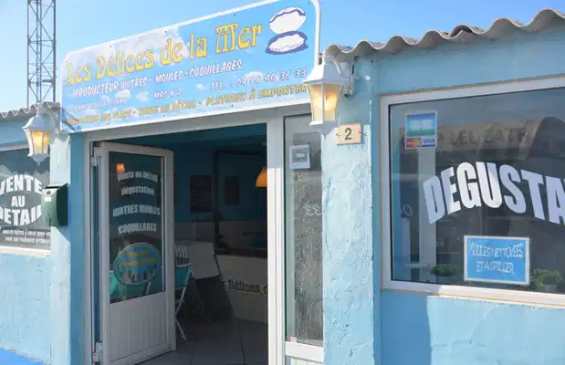 C'est vers 11 heures du matin que j'ai fait une dégustation d'huitres au centre ostréicole de Leucate, l'heure à laquelle le palet est le plus à même d'apprécier l'alliance de vin blanc local et des fruits de mer. Les mas sont colorés et les ostréiculteurs accueillants. Les paniers sont situés dans l'étang salé de Leucate.