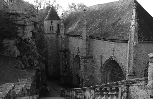 La Chapelle de Sainte-Barbe date du XVIIème siècle. Elle est située non loin du Faouët, perdue dans la campagne morbihannaise. Son principal attrait réside dans son emplacement, en haut d'une colline, le long d'un escarpement rocheux. L'arrivée par le chemin de randonnée est à couper le souffle ! undefined