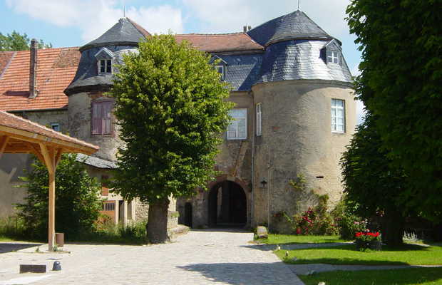 Ce château du XIVème siècle est une Wasserburg, château de plaine protégé jadis d'un fossé en eau alimenté par l'Eichel. Ce château défendait la frontière-est du Comté de Sarrewerden. La grange et le moulin ouvrent une belle perspective sur le château. Ce château se visite librement et seul les extérieurs sont visitables. Les intérieurs appartenant à des propriétaires privés