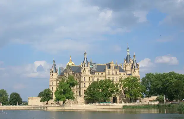 L'emblème de la ville, la "fée château de conte", est situé dans un paysage unique. Schwerin offre le cadre idéal pour passer un séjour de repos et de loisirs. Schwerin est riche en lieux touristiques. C'est le conte de fées, le "Neuschwanstein du Nord". Schwerin, avec ses magnifiques musées et orangeries, est entouré d'un parc romantique et le style néo-baroque du Mecklembourg State Theatre. Au cœur de Schwerin brille la place du marché, des maisons à pignons et le monument du Lion. Le Château de Schwerin (en allemand: Schweriner Schloss) est un château situé dans la ville de Schwerin, capitale du Land de Mecklembourg-Poméranie-Occidentale, en Allemagne.