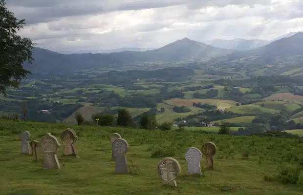 Une fois au sommet, à côté de la chapelle de Arantzazu (dont le pèlerinage a lieu le lundi de Pentecôte), vous trouverez ces 3 croix avec le Christ et deux voleurs accrochés aux croix. Impressionantes. Comme le sont aussi les sillages en forme de disque à côté d'elles.