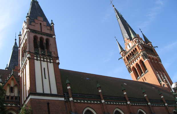 L'Eglise du Sacré-Cœur de Jésus église est l'une des plus anciennes et des plus belles de la ville d'Olsztyn. Le bâtiment a été conçu par l'architecte Fritz Heitmann. La première fois que j'ai vu l'Eglise, elle m'a rappelé le palais de la Belle au bois dormant, pour ses pointes, elle est vraiment magnifique. Le bâtiment est composé de trois tours. La plus grande mesure 83 mètres de hauteur, et les autres ornent le haut sur un diamètre de 1,7 mètres. La voûte de la nef est soutenue par 10 piliers de brique. Il est très proche de l'Alpha Mall, et il donne sur une rue perpendiculaire à la prison.