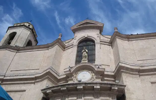 À première vue, la façade de cette église ne paye pas de minie, son style est simple et ses parois latérales sont quelconques, mais quand on s'en approche on redécouvre sa façade, sans trop de fioritures mais dont le portique révèle un style baroque, qui existaient autrefois dans cette région de la Provence. Elle date du XVIIIè siècle et l'intérieur vous pouvez constater le passage du temps. La pâleur des murs, contraste avec l'obscurité du mobilier en bois, comme la chaire, minutieusement sculptée: c'est une véritable oeuvre d'art.