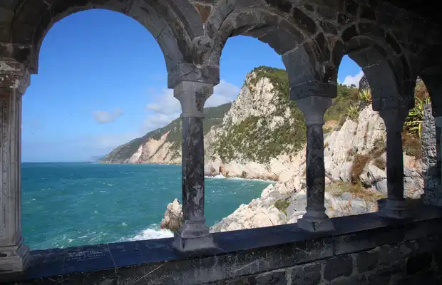 L'église Saint Pierre date du 13ème siècle. Sa façade présente les traditionnelles bandes vertes et blanches du style ligure de l'époque. L'église occupe un site exceptionnel, perchée sur un cap qui s'avance en Méditerranée et marque l'extrémité occidentale du Golfe des Poètes. De la galerie du mini-cloitre aux baies géminées, le point de vue est formidable, en direction des Cinque Terre. Les portes de bronze sont modernes et présentent de beaux petits bustes des évangélistes et de Paul.