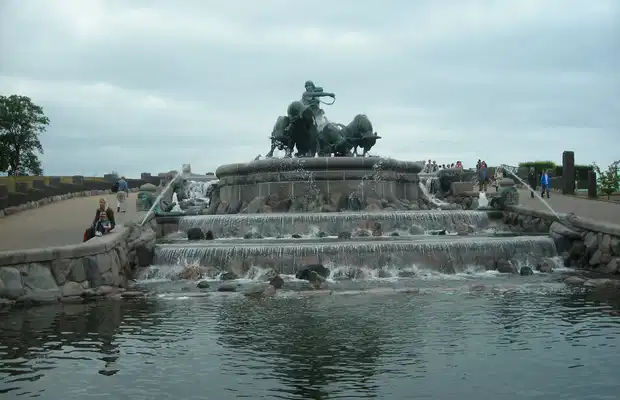 La fontaine Gefion ou en danois Gefionspringvandet se trouve au nord de la ville, a la hauteur de la citadelle de Kastellet. C´est une grande fontaine a coté de la mer, qui représente plusieurs animaux de grande taille, emmenés par une déesse de la mythologie, Gefjun. C´est un lieu de balade populaire pour les habitants, qui en passant jettent une pièce a la fontaine pour qu´elle réalise leurs rêves. La fontaine est un cadeau de la fondation Carlsberg, elle a été installée la pour célébrer le 50eme anniversaire de l´entreprise. Au début, ils voulaient la mettre sur la place de la mairie, mais elle a finalement atterri dans le parc de Langelinie.