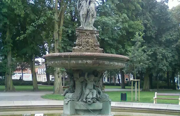 Le parc Saint-Pierre est un parc particulièrement agréable mais sa fontaine lui donne vraiment un charme unique qu'il serait dommage de manquer. Elle est superbe, tout simplement, presque autant que les trois femmes qui en ornent la colonne centrale. Je ne serais d'ailleurs pas étonné que ce soit les trois Grâces, de la mythologie antique, à savoir Aglaé, Euphrosine et Thalie. Elle ont une posture retenue et discrète qui les rend bien élégantes, elles contrastent ainsi tout en douceur avec les petits anges nus qui se trouvent plus bas et qui semblent plus actifs, animé sans doute par le désir de jouer avec et dans l'eau de cette fontaine.