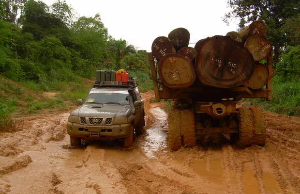 Une fois coupés, les arbres sont mis dans d'immenses camions et acheminés vers le port où ils sont enfin acheminés vers la Chine.