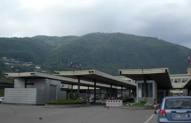 On ressort de Suisse par la frontière italienne, a la hauteur du lac de Come, et de Milan. Le plus surprenant, c´est qu´au début, on pensait vraiment etre en Italie, car on savait que la Suisse a une partie italophone, mais on ne pensait pas qu´elle serait si étendue. Donc au bout d´une demi heure de route, on a été plutôt surpris de voir enfin la frontière pour sortir de Suisse. Notre route de la journée était presque terminée, et heureusement car c´était l´heure de la sortie des bureaux, donc les frontaliers, qui travaillent en Suisse et habitent le nord de l´Italie rentraient chez eux, et même si au poste frontière on ne vérifie ni les passeports ni les documents de la voiture, il faut ralentir, au cas oú on ait a passer un contrôle de douane.
