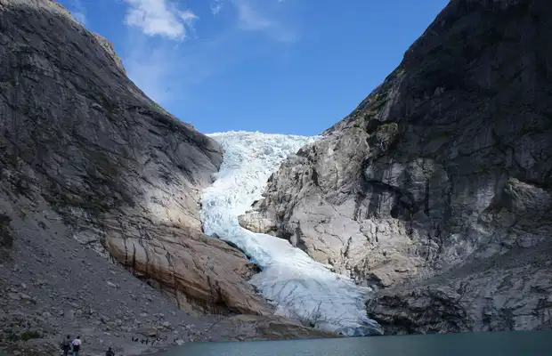 Cela m'avait dit que la glace était de couleur bleu et donc nous sommes allés vérifier au parc national de Jostedalsbreen dans le comté de Sogn og Fjordane en Norvège pour regarder le Briksdalsbreen ou le glacier Briksdal, un des glaciers les plus célèbres et plus accessible de ce pays.