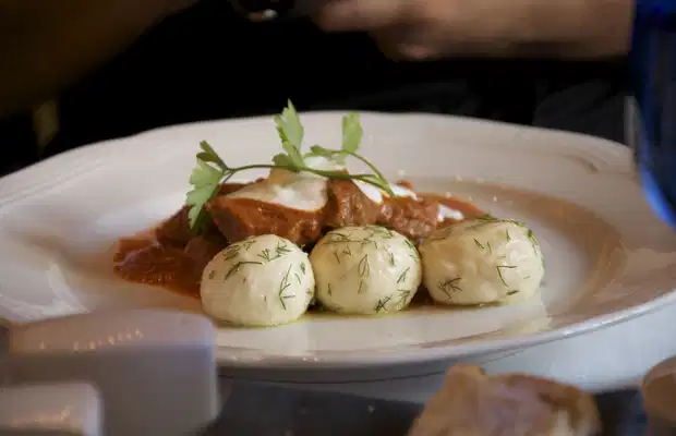 Gerbaud est surtout connu pour être la plus célèbre pâtisserie de la ville de Budapest. En effet, cet endroit a une touche vraiment particulière. Pourtant, depuis ces dernières années, il a cherché à offrir quelque chose de différent. Alors, il a ouvert un restaurant qui se caractérise par son décor un peu bizarre. C'est comme un vieux palais. Certains l'adorent beaucoup et d'autres non. De toute façon, l'accueil est chaleureux, les plats sont vraiment délicieux. Au menu, comme dans la plupart des restaurants traditionnels, il y a de la viande, du canard, etc.