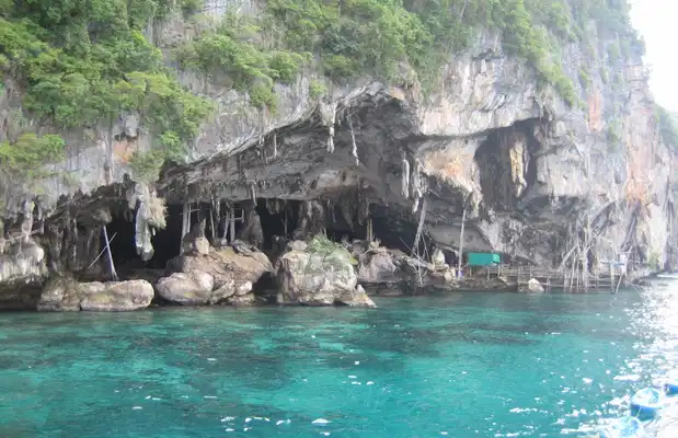 Si vous aimez regarder des recoins incroyables, c'est l'un d'eux. Il s'agit de la "Grotte des Pirates" dans les îles Phi Phi en Thaïlande. Des grottes où, auparavant, comme son nom l'indique, était un repaire de pirates. Actuellement, elle est utilisée pour extraire les fameux nids d'hirondelles que possèdent certains restaurants de catégorie. Ici, je vous laisse quelques photos.