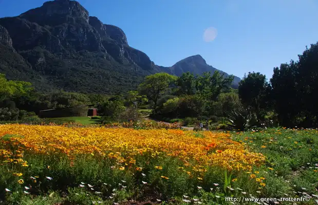 De l'autre côté de Table Montain par rapport à Cap Town, on peut s'y rendre assez facilement en taxi. C'est un immense jardin botanique pour lequel il faut bien prévoir la journée pour en profiter totalement. Nous y étions au début du printemps et c'était magnifique de voir les parterres de fleurs jaunes, bleues, rouges, violettes avec en fond Table Montain. Le parc est organisé par thèmes. Nous avons beaucoup aimé le petit sentier des senteurs où l'on découvre ou redécouvre l'odeur de certaines plantes, également le sentier qui explique l'utilisation des plantes pour les remèdes médicinaux. Le
