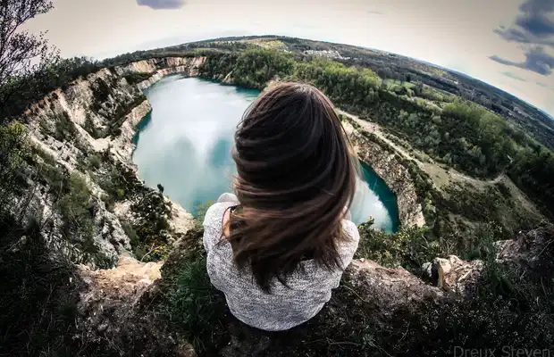 Tu descend de ta voiture, prend ton matos photo accompagné d'une personne pleine de joie, tu monte monte monte et remonte la coline du mont brûlé, tu passe en dessous du grillage qui est censé t'arrêté, tu fais quelques pas et la tu en prend pleins la vue, tu vois a des kilomètres au loin mais le plus impressionnant c'est les soixantaine de mètre de vide qui plongent directement dans une carrière abandonnée remplie d'eau turquoise. Tu cherche l'endroit qui pourrais être le plus photogénique puis tu te lance, prend un peu de risque sur le bord et prend des photos.