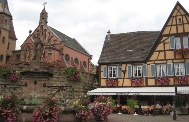 La fontaine Saint –Léon se trouve au centre du village classé d’Eguisheim sur la place du château. C’est une grande fontaine assez jolie qui porte en son centre une statue de Saint-Léon IX. Mais qui était cet homme célèbre ? Saint Léon IX né en 1002 à Eguisheim de son vrai nom Bruno d’Eguisheim fut couronné Pape en 1049 après avoir été évêque de Toul. Il œuvra pour la paix au sein de l’Europe. Une chapelle situé a quelques mètres porte également son nom.
