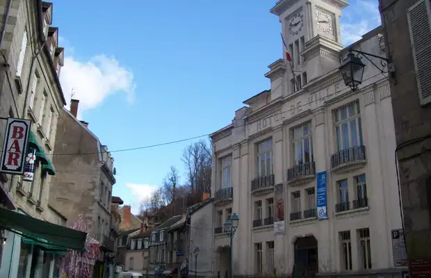Plus ou moins parallèle à la rue vieille, la Grand Rue est devenu l'axe principal d'Aubusson au XVIIIème siècle. Elle garde le tracé du ruisseau de la Queuille, qui a été recouvert à cette époque-là. Cette rue très commerçante compte également plusieurs galeries de tapisserie ainsi que quelques édifices remarquables : notamment l'hôtel de ville, mais aussi la maison Rogier, au n°74, qui porte le nom d'une famille de tapissiers et de consuls de la ville. Au bout de la rue, vous pouvez admirer une belle maison à pans de bois.