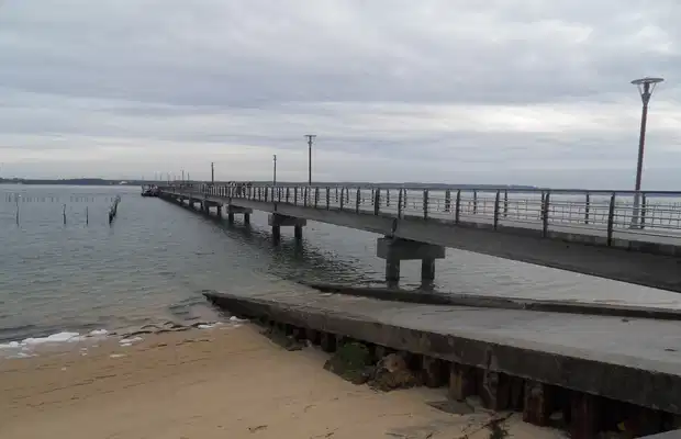La jetée de Bélisaire est une des plus agréable de la presqu'île. Réaménagée depuis peu, elle est aujourd'hui plus large, et sa rambarde en bois s'accorde joliment à l'eau et aux bateaux. Mais les nouvelles restrictions interdisent aussi pêche et plongeons...Restrictions bien souvent peu respectées! La jetée sert surtout de débarcadère de la navette Arcachon / Cap Ferret (ballade très agréable!) et il n'est pas rare de voir des petits groupes emplir la jetée, parfois même chargés de valise! Les bancs au bout de la jetée sont en endroit très agréable pour s'installer quelques instants et regarder