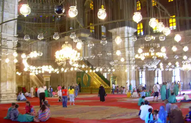 C'est autour de la citadelle Saladin que la grande Mosquée de Mohammed Ali a été édifiée. Construite entre 1830 et 1848, elle a été largement inspirée de la Mosquée Bleue et de l'Église Sainte Sophie d'Istanbul. Ses minarets se dressent avec élégance vers le ciel et l'immense coupole centrale vous impressionnera. Dans la cour, se trouve une fontaine aux ablutions, protégée par un kiosque. En son centre, trône la grande horloge, cadeau du roi de France Louis Philippe en remerciement de l'obélisque de la place de la Concorde à Paris.