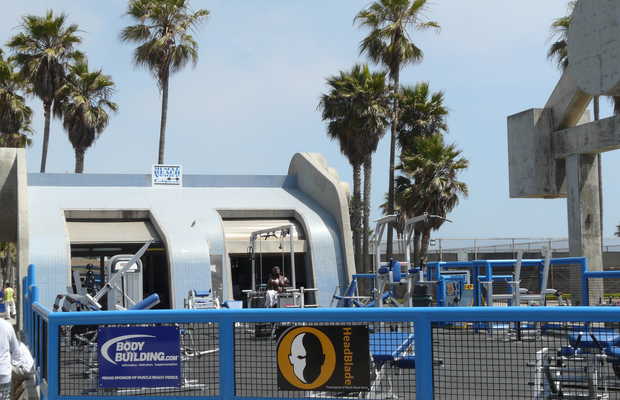 Au coeur de Venice Beach, il y a cette salle de gymnastique et de musculation en plein air, où vous pourrez toujours trouver des personnes qui font de l'exercice et du bodybuilding. C'est très drôle de les voir faire çà dans la rue, surtout sous cette chaleur. C'est très ...typique, à la limite du burlesque, mais c'est finalement assez marrant. On croirait être dans un film.