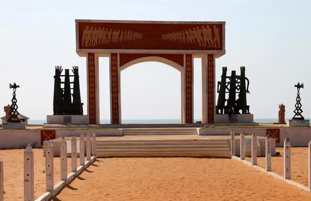 Sur la plage de Ouidah se dresse un monument érigé en 1992 par l'UNESCO pour la mémoire des Africains déportés à partir de cet endroit. Avec la complicité des rois de l'ex-Dahomey, les esclavagistes européens ont, entre le 16ème et le 19ème siècles, déporté plus de 100 millions d'Africains. Ouidah est ainsi, avec l'île de Gorée, au Sénégal, un des principaux mémoriaux de l'esclavagisme sur le continent noir.