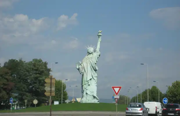 Au nord de Colmar, une chose assez surprenant est à voir : une petite statue de la Liberté se trouve sur un rond-point, où de nombreuses voitures circulent. En effet, l’auteur de la Statue de la Liberté située à New York est né à Colmar : Auguste Bartholdi et Colmar a installé cette statue afin de lui rendre hommage. Bartholdi est à l’origine de nombreuses œuvres telles que : statue de Diderot située à Langres, la fontaine de Bartholdi à Lyon ou encore la statue Schwendi de Colmar.