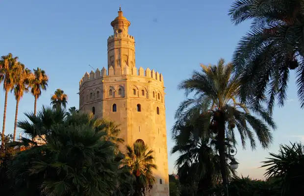 Situé non loi de la Place des taureaux et au bord du fleuve Guadalquivir, la tour datant du 13ème siècle défendait l’Alcazar. Ce système défensif de l’époque musulmane protégeait le port fluvial d’éventuels ennemis et surveillait l’entrée des marchandises. Elle pouvait fermer le port par un système de chaine qui allait jusqu’à la rive opposée. La tour est composée de mélange de mortier et de paille et était recouverte d’azulejos dorés (carreaux de faïence). Aujourd’hui, elle abrite le Musée de la Marine, qui retrace l’histoire navale de Séville. Il peut se visiter du mardi au vendredi de 10h à 14h et le samedi et dimanche de 11h à 14h au tarif unique de 1€.