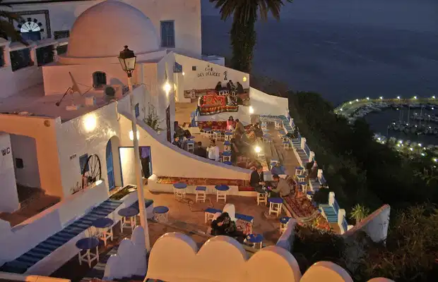 Bénéficiant certainement de l'une des plus belles vues sur le golfe de Carthage, avec un panorama imprenable sur cette mer Méditerranée bleu azur, le Café des Délices, rendu éminemment célèbre par la chanson populaire de Patrick Bruel, est l'un des lieux les plus agréables de Sidi Bou Saïd. Avec son immense terrasse dotée de coussins très confortable, il fait bon s'y prélasser devant la vue au couher du soleil, en savourant un excellent jus de fruit ou en fumant un délicieux narguilé autour de l'une de ces tables basses typiques du pays. Un moment de pure détente pendant lequel on se sent, l'espace