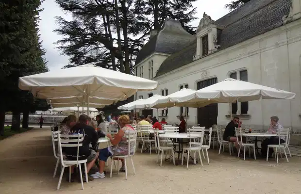 Niché au coeur du parc du chateau, non loin de l'allée centrale et du jardin de Catherine de Médicis, le café du chateau de Chenonceau est un self service qui offre une pause bien agréable dans un cadre enchanteur. Les pique-niques étant interdits dans l'enceinte du parc (des aires étant prévues et aménagées à l'entrée, près des parkings), il est bien agréable de s'y asseoir pour déjeuner, goûter ou boire un verre. La terrasse est en effet bien sympathique, avec ses tables et ses chaises qui permettent une halte réconfortante et rafraichissante avant ou après la visite. Attention néanmoins, les