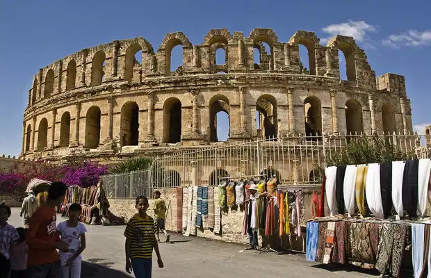 Cet amphithéâtre, construit probablement au IIIe siècle, est le monument romain le plus célèbre de la Tunisie et le mieux conservé du Maghreb. Pour y accéder depuis Kairouan, le voyageur a deux choix qui s'offrent à lui, la route normale ou l'ancienne voie pavée romaine. Une fois sur place, on est saisi par l'immensité de ces ruines que le temps (et les travaux de restauration du gouvernement tunisien) semblent avoir épargné. Visible à plusieurs kilomètres de distance, il aurait sans doute abrités des combats de gladiateurs, des courses de chars et des jeux du cirque comme le témoignent les fosses
