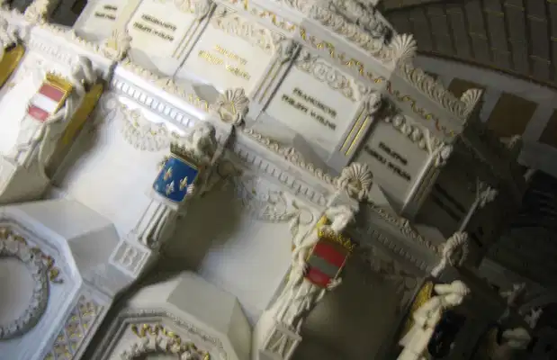 On y descend par des escaliers sombre, et l'utilisation du marbre confère une atmosphère particulière au lieu. Quand vous arrivez au centre, il y a tous les cercueils...