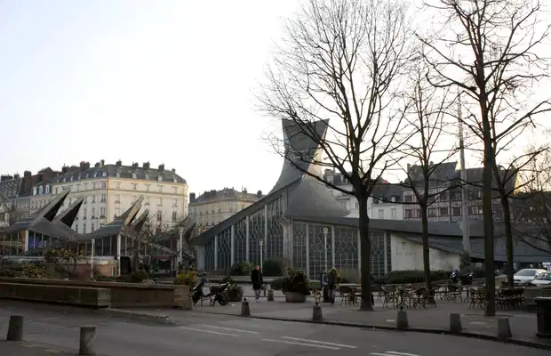 Cette église je passe devant presque tout les jours. Il m'arrive d'y jeter un œil de temps à autre mais je n'avais jamais pris le temps de la regarder vraiment de plus près jusqu'au jour ou l'on me demanda d'en faire des photos. J'y suis donc allé vraiment pour la première fois vers 16h30 fin décembre, à cette heure la lumière diminue pas mal, c'était un jour très froid, en 5 minutes j'avais les mains gelés... Mais en osant rentrer à l'intérieur le sourire arriva de suite, le corps se réchauffa tellement j'étais ébloui par la chaleur qui régné dans les lieux. C'est une église résolument moderne, de l'extérieur elle paraît dépassé, moche mais quand on y pose les yeux rien qu'un peu on trouve des perspectives magnifique et des vues à faire partout.