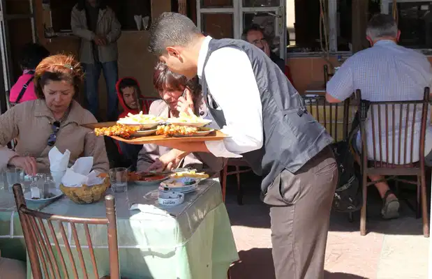 Le café snack Les Arcades est idéalement situé à Taroudant, sur la place principale où le spectacle est permanent. Certes ce n'est pas "La Place de Marrakech", mais le plaisir des yeux est présent tandis qu'on se sustente de brochettes-frites. La carte n'est, de fait, pas très variée, mais c'est honorable surtout pour un midi à l'ombre des parasols.