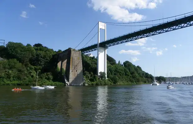 Lorsque l'on se trouve sur le port, on peut observer trois sortes de ponts. Le premier a été inauguré en 1839 après trois ans de travaux mais sera détruit le 15 août 1944 par la foudre qui tombera sur une mine posée par les allemands. Un second pont sera donc construit, inspiré du pont de Tancarville en Seine Maritime. Il est conçu pour accueillir un trafic grandissant. Cependant, victime du développement de la circulation, les deux voies se révèlent insuffisantes et favorisent les bouchons. Ainsi la ville de la Roche Bernard envisage une déviation: Un nouveau pont avec quatre voies sera ainsi construit et inauguré en 1996 à 600 mètres de l'autre pont.