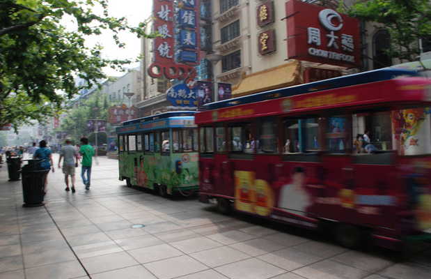 Dans le centre de Shanghai circulent quelques petits trains touristiques qui vous amènent faire une tour en passant par les plus importants sites commerciaux de cette grande ville orientale. L'une des zones les plus circulées est East Nanjing Rd. située au cœur de la zone centrale. Des milliers de touristes et de locaux y viennent pour faire leurs achats dans les grands magasins et les magasins d'"imitation". Le trajet, et même si cela dépend de la durée, est habituellement aux environs de 2 euros.