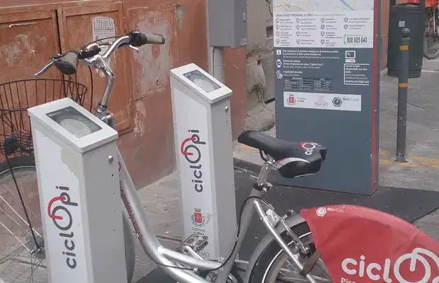 Comme dans toute grande ville plus ou moins touristique, on peut à Pise louer des vélos pour se balader plus rapidement. Ici, ils s'appellent les Ciclopi et plutôt qu'un œil ils ont bien deux pédales et une selle assez légère, autant que leurs tarifs. Il faut compter environ 5€ pour une petite demi heure et on peut en trouver jusqu'à l'aéroport.
