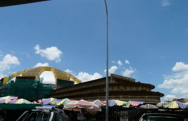 Aussi appelé New Shit, il est au cœur de la ville, à côté de la gare routière Soriya, et plus ou moins à mi-chemin entre le Palais Royal et le Wat Phnom (plutôt près de ce dernier). Il s’agit d’un bâtiment en forme d'X avec un dôme jaune à l’intérieur. Dans chaque bras de l’X, les stands ont un thème: l'un pour la boucherie, un autre pour les vêtements et accessoires, puis pour les légumes et fruits. Mais, il y a tellement de stands que finalement le bâtiment est presque entouré d'un tas d’étals. Comme dans tous les marchés d’Asie du Sud-Est, on peut trouver presque tout. Comme il se caractérise par le grand nombre d’imitations, je dirai que c'est le marché des contrefaçons, tout y est une imitation, généralement de très mauvaise qualité.