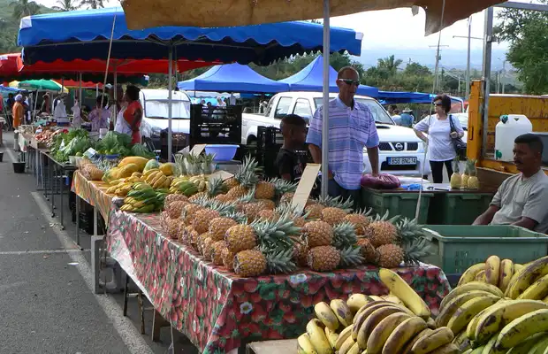 Sur la route du théâtre, entre saint gilles les bains et saint gilles les hauts il y a un marché qui se tient tous les dimanches matins. Ce marché qui s'agrandit au fur et à mesure se trouve sur le parking du théâtre de saint Gilles. Ici les primeurs sont les plus nombreux pour vous présenter leurs carottes à la taille hors normes, des chouchous etc... Ici les légumes ne font pas la même taille qu'en France ! Avec ça, vous pouvez acheter quelques plantes, du miel, des tisanes comme du thé !