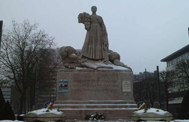 Juste à la sortie du tram, arrêt Alfred Mongy, vous pourrez découvrir le monument aux morts de Roubaix. Ici, point de sobriété, de pierre discrète, non : Roubaix a vu grand. Le monument est clairement impressionnant et en impose : Une marianne dressée, victorieuse, sur une estrade surélevée. D'ailleurs le monument ne s'arrête pas à la statue mais l'espace tout autour semble lui-aussi dédié à la mémoire de nos soldats. Il y a quelque chose de vraiment épique dans cette allée de petits arbrisseaux impeccablement taillés.