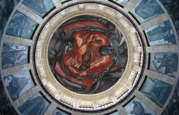 Guadalajara est un bel endroit et j’ai eu l’occasion de la visiter avec des amis, nous vous recommandons beaucoup d’aller à l’Hospicio Cabañas.Nous y avons découvert une collection de fresques de José Clément Orozco, muraliste reconnu,qui en 1937, a été invité à effectuer la collection de fresques, il est, de nos jours, l’un des plus importants artistes plasticiens du pays. Dans ces fresques il exprime plusieurs évènements de l’histoire du Mexique en abordant la Conquête, la Colonie et les temps modernes. Dans les fresques, Orozco a interprété la vie préhispanique, le choc culturel entre les indigènes et les espagnols ; de même, il a aussi abordé la fondation de Guadalajara et a touché des scènes de la réalité tragique contemporaine.
