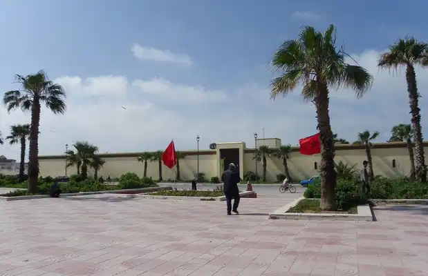Le palais royal d’Essaouira est un peu hors de la ville fortifiée. C’est la résidence du roi Mohamed VI quand il est à Essaouira. Sa résidence principale est à Rabat, dans la capitale. Le palais est près de la mer, dans un quartier moderne, est surveillé dans tous les côtés et vous ne pouvez pas voir l’intérieur parce qu’il y a des grands murs et beaucoup de végétation qui le protègent. Les portes sont magnifiques et laissent deviner les merveilles qui se cachent derrière.