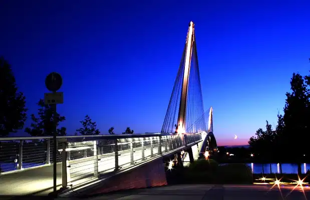 Le Pont Mimram, construit en 2004, entre Strasbourg (France) et Kehl (Allemagne) représente le symbole de réconciliation entre les deux peuples, vue l’histoire tumultueuse d’entre eux, mais aussi le symbole d’une Europe sans frontières, caractérisée par « l’unité en diversité ». C’est un pont pour les piétonnes, mais aussi pour les cyclistes qui fait partie du parc « Jardin des deux rives », d’une coté et l’autre du Rhin.