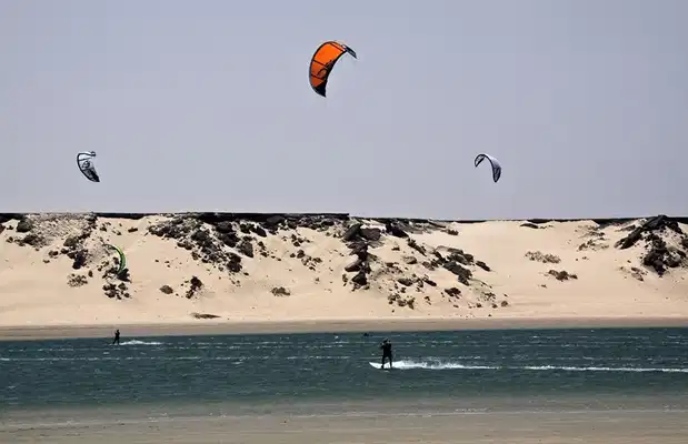 De nombreuses personnes viennent jusqu'à ses eaux pour pratiquer le kitesurf.